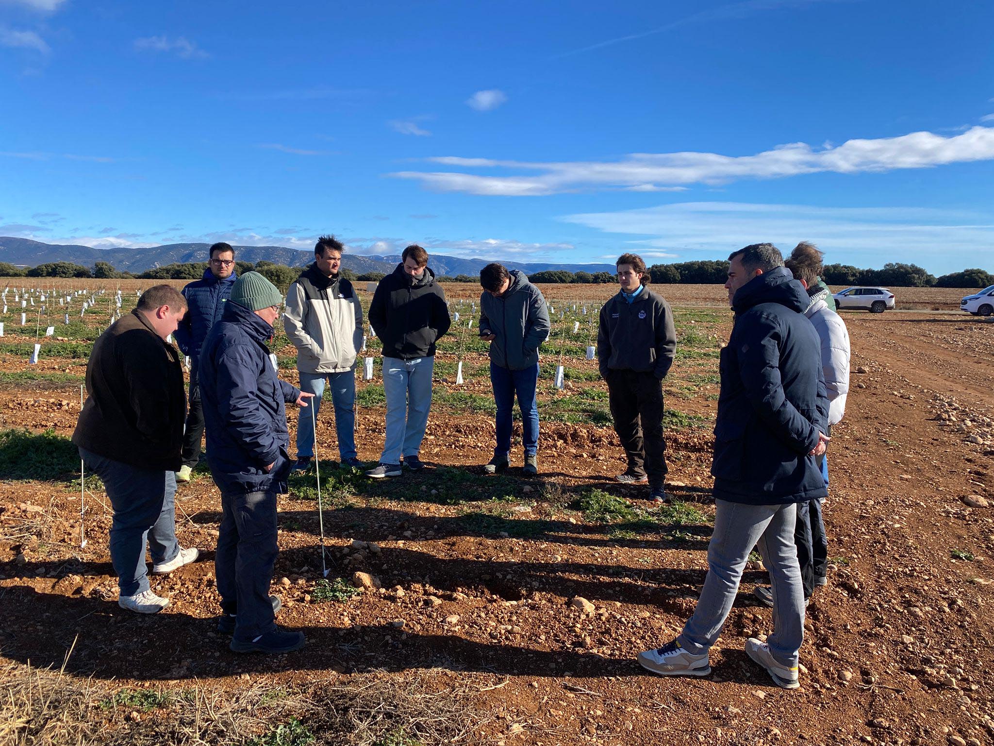 Durante el mes de diciembre, la finca El Carrascal de Ibieca recibió la visita de alumnos de la Escuela Politécnica Superior de Huesca, futuros técnicos e ingenieros agrónomos, en el marco de su formación académica.